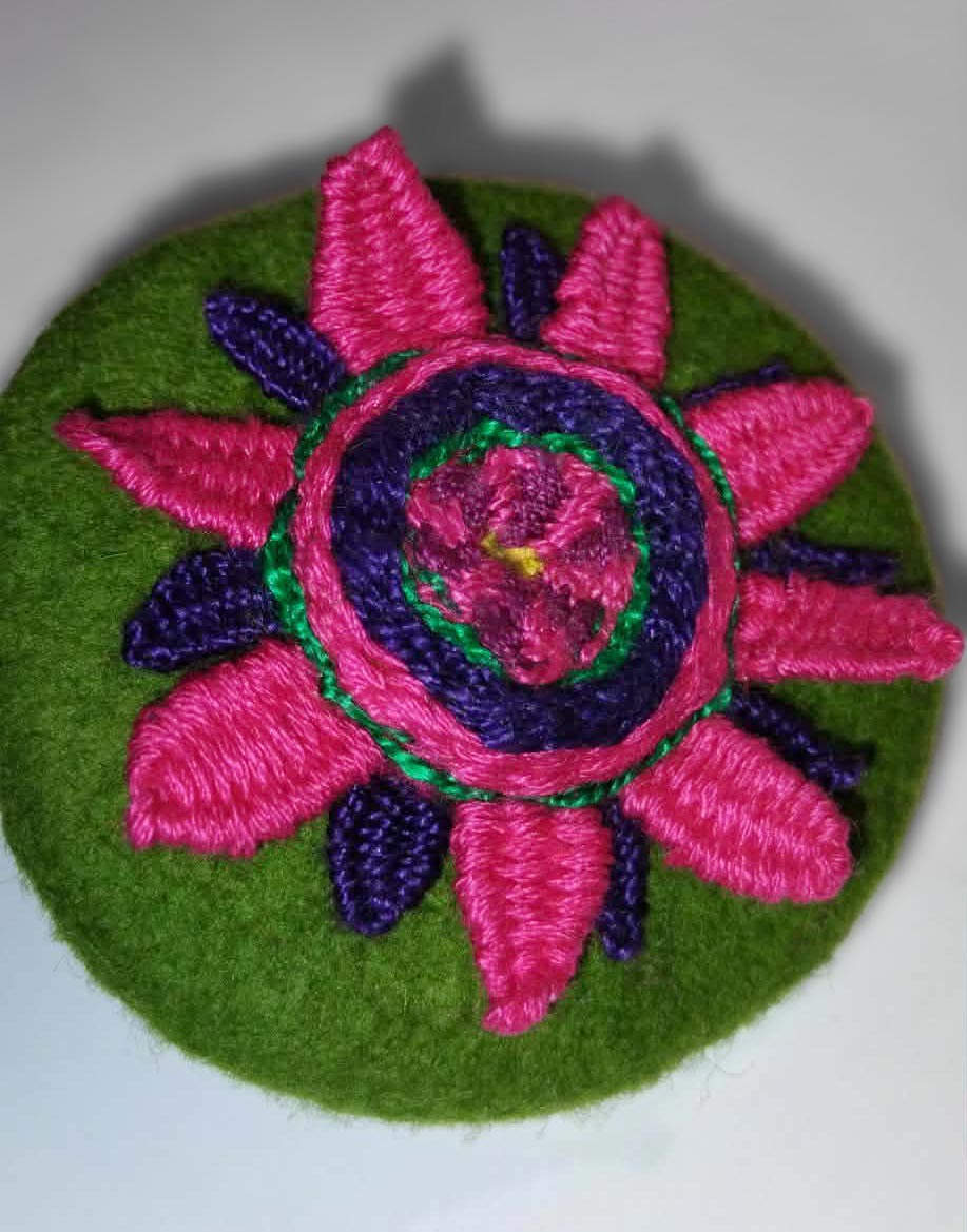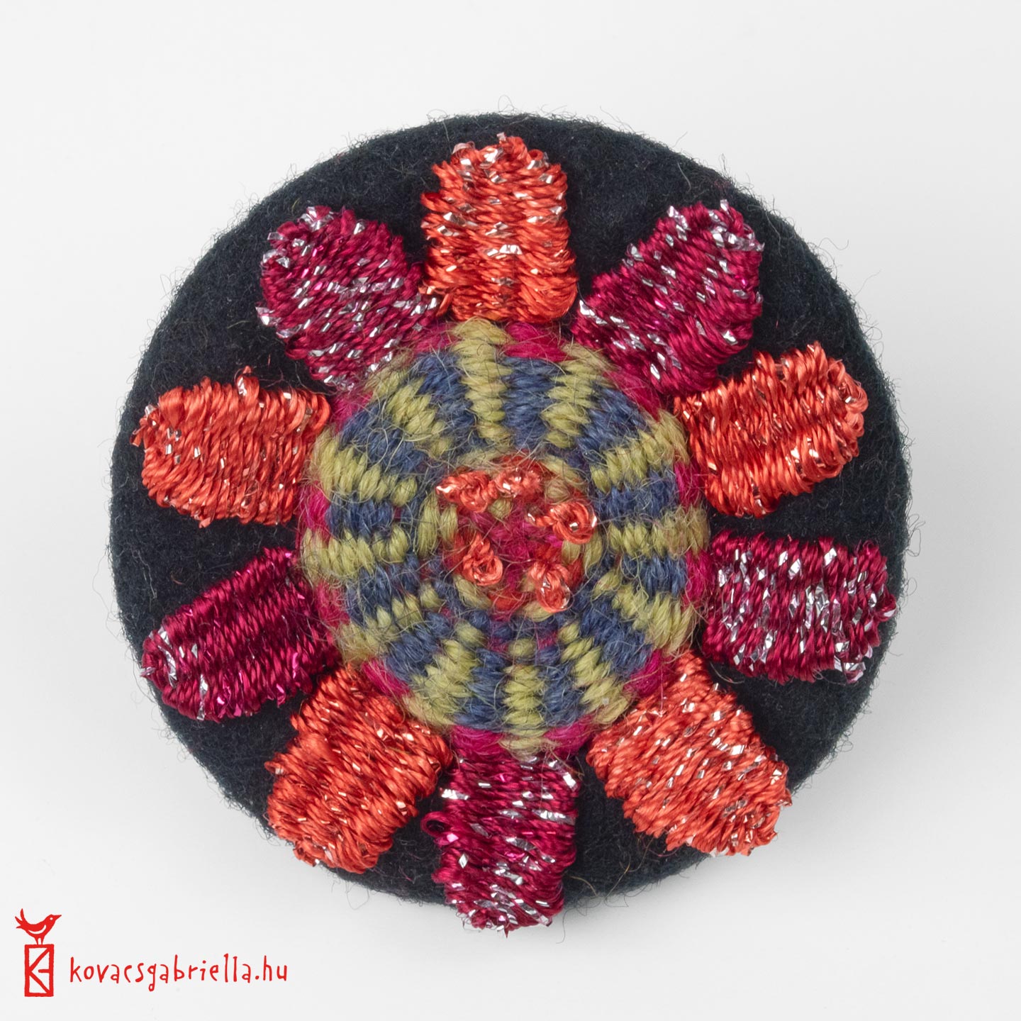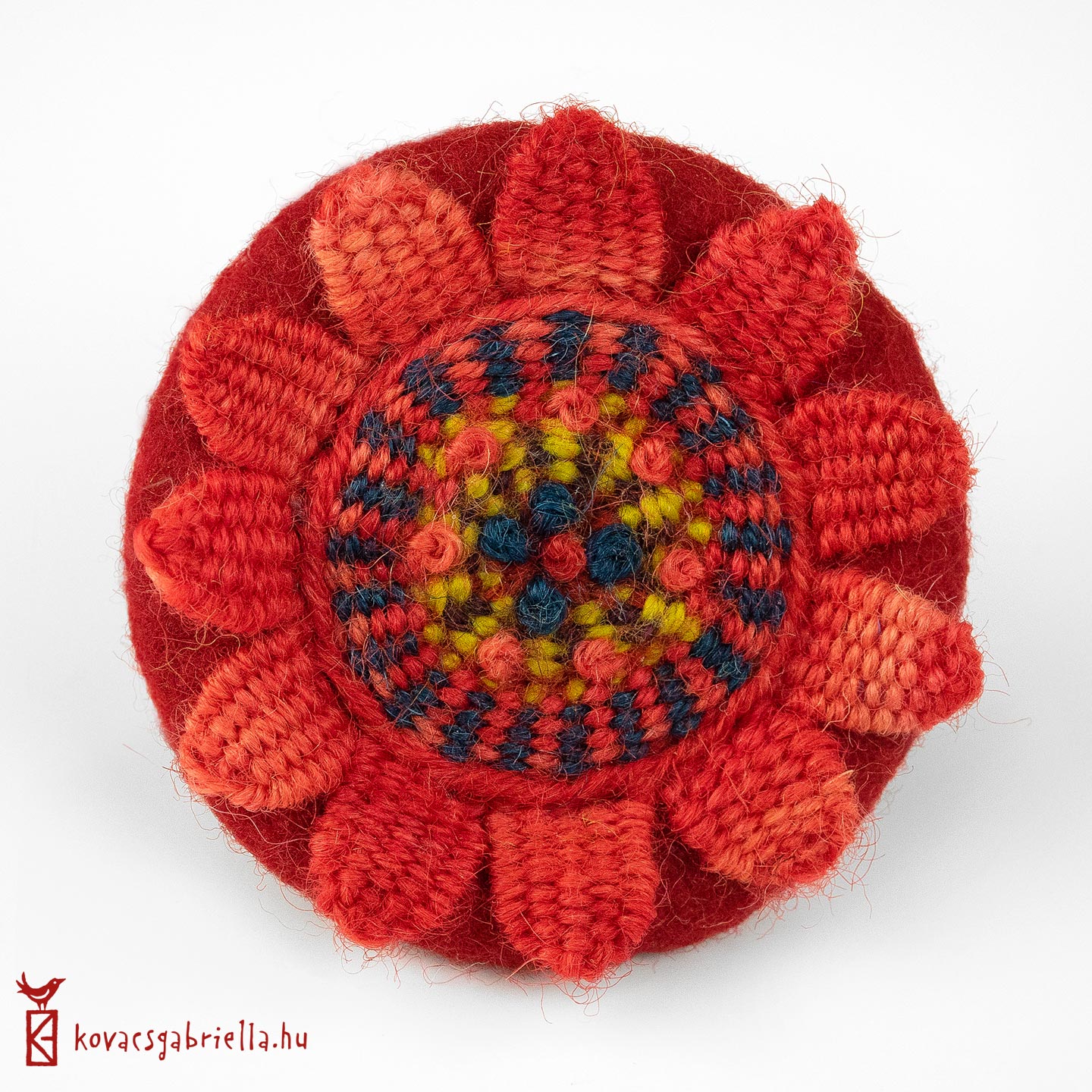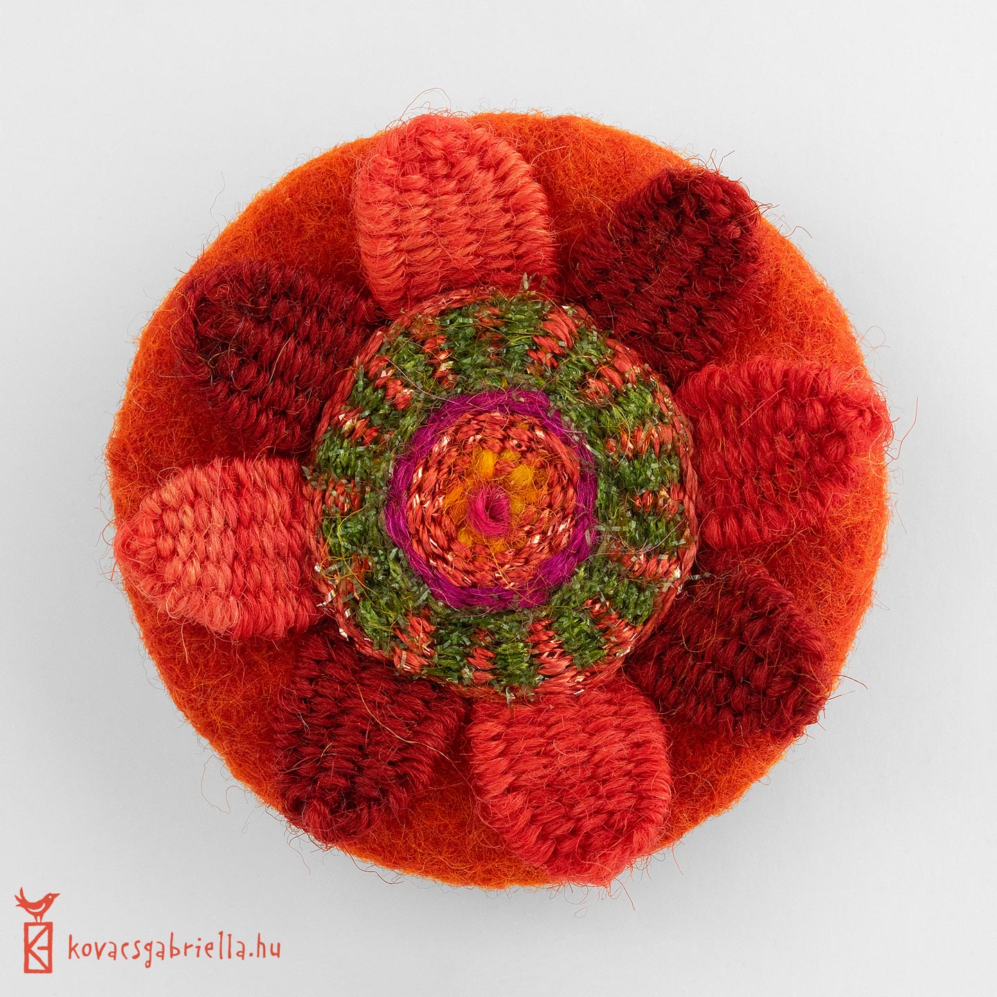 Kerek, lapos gyűrűalap nemezelése és beszövése csíkos és pálcás szövés, kis szirmok szövése és különböző változatai.