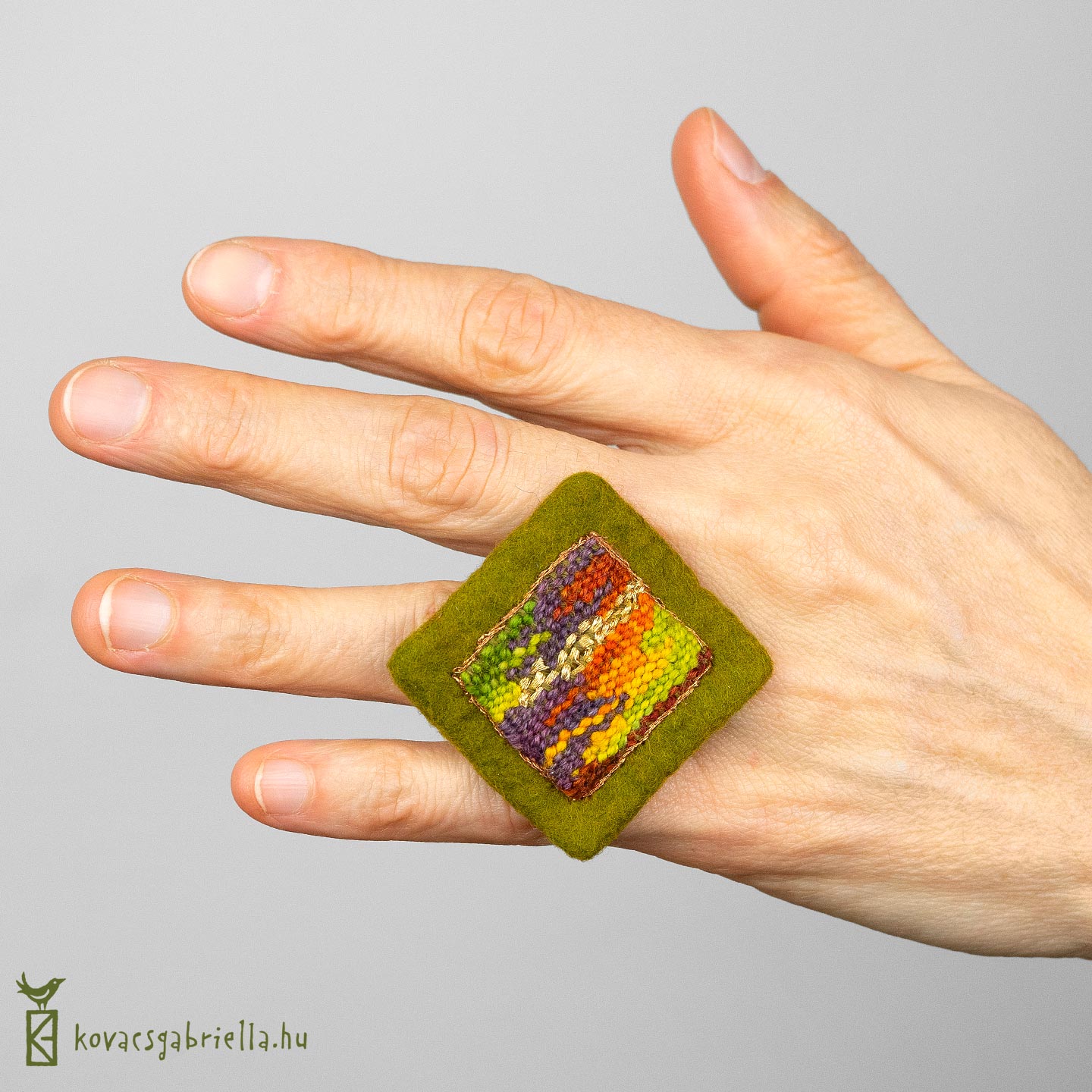A gyűrű karika része laposan készül ezért kényelmesen fekszik az ujjak közé. A nemezelésnél eltérhetsz a·gyűrűtől, ha te nem viselsz, és akár készíthetsz medált vagy brosst is. A szövéstechnikákat szabadon variálva egyedivé teheted az ékszered. Az összes szövés elsajátítása hatalmas szabadságot ad a végtelen variációkra.