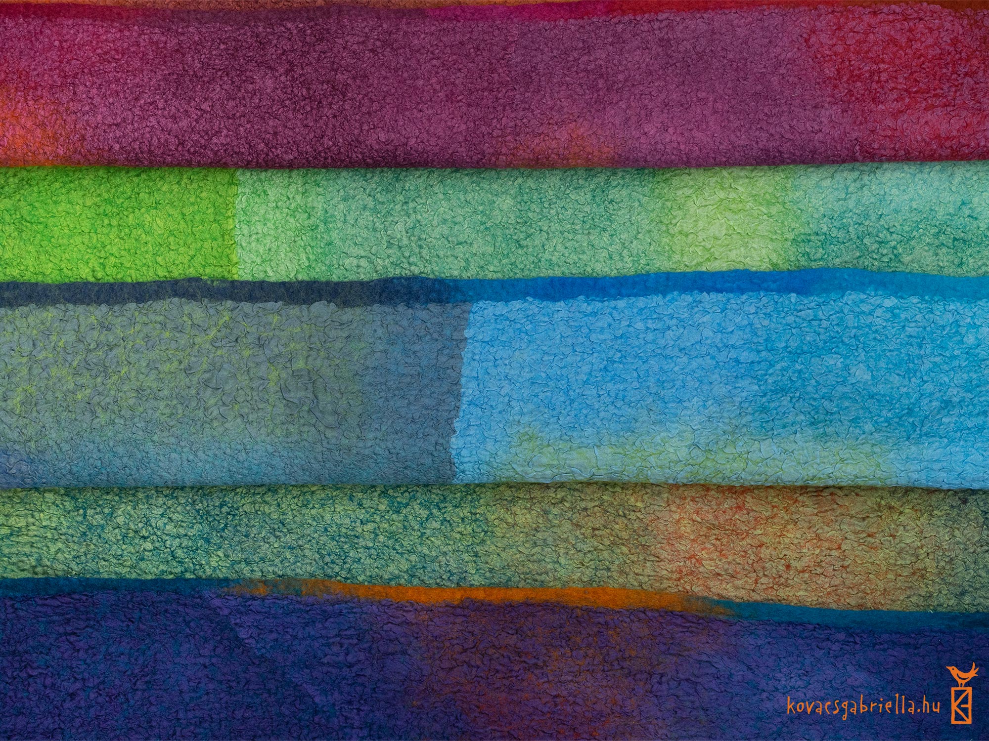 A festői hatást a gyapjú és a selyem együttes színhasználata adja. Körüljárjuk, hogy miként lehet akvarellszerű színátmeneteket és látványos felületeket létrehozni ezzel·a·technikával, ami egyúttal vékony és erős felületet eredményez, de mégis puha és kényelmes viselet.